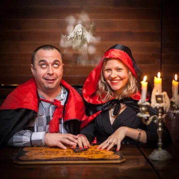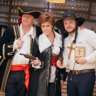 Представьте: к вам приезжает ведущий с реквизитом и костюмами, и гости перевоплощаются в героев фильма. Но если в фильме всё известно заранее, то здесь нажали «стоп» и сказали: «Дальше действуйте вы».